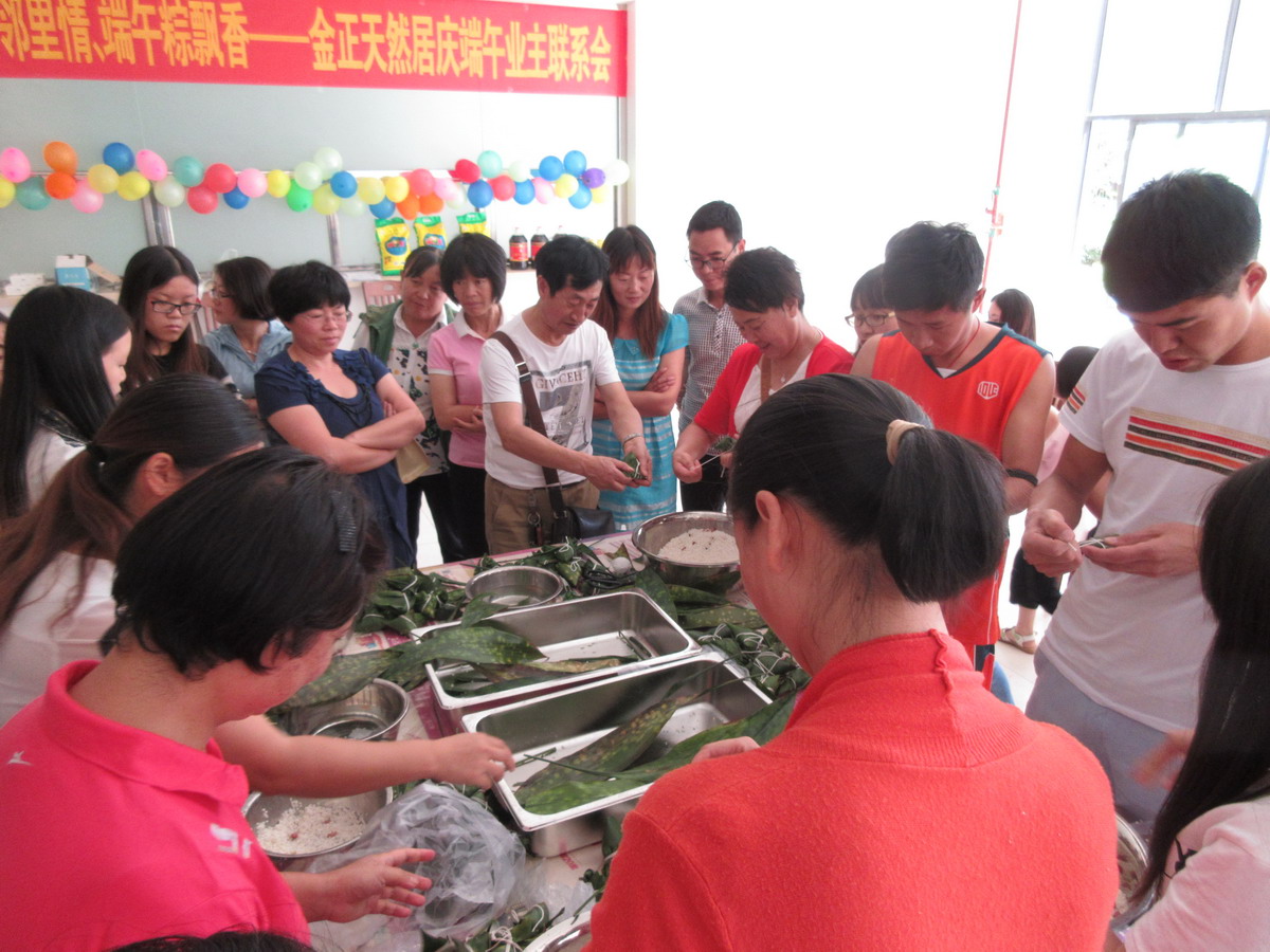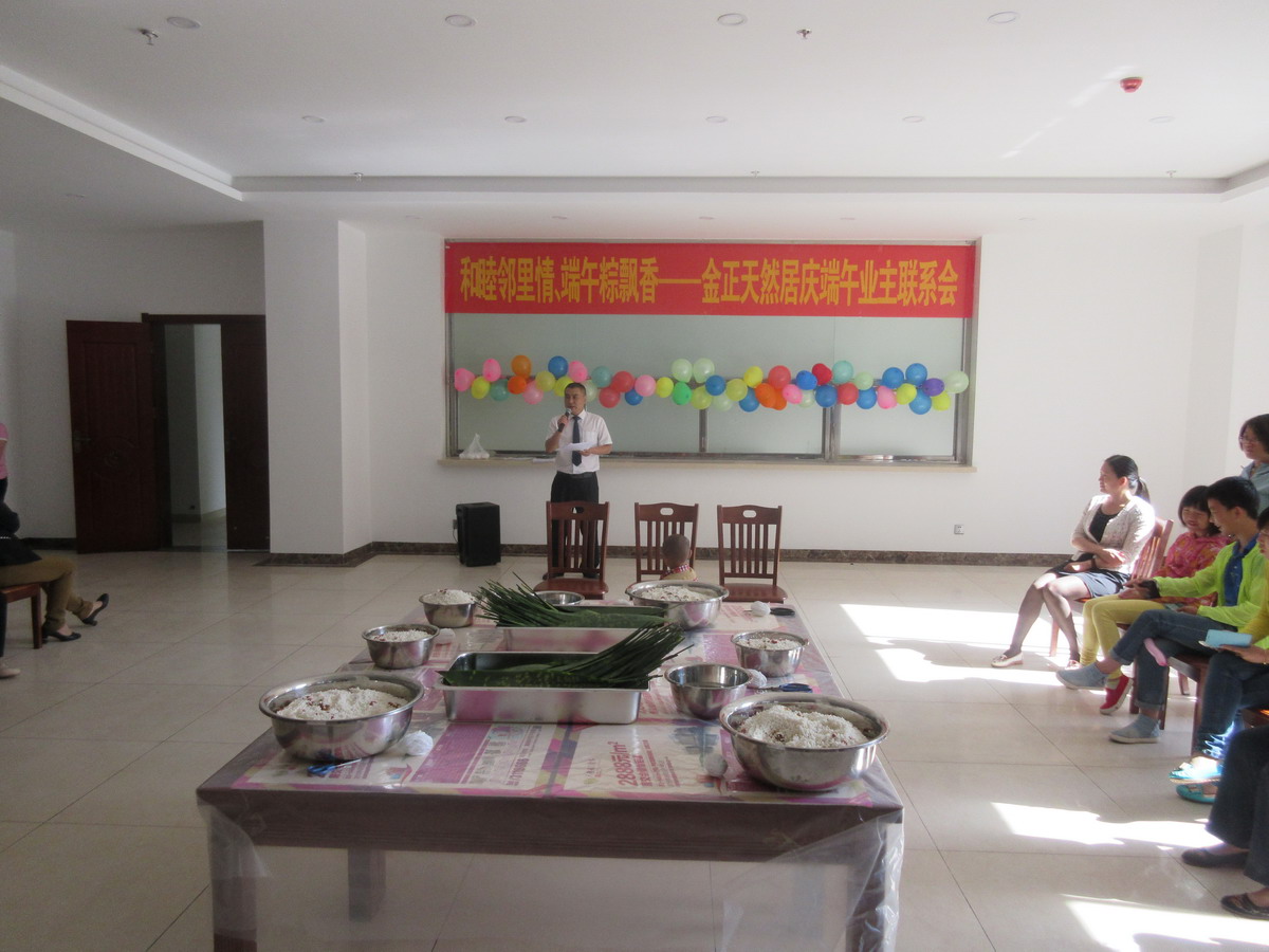 •     為繼承和發(fā)揚民族優(yōu)秀傳統(tǒng)文化,營造和諧社區(qū)氛圍,增強小區(qū)業(yè)主鄰里間感情,豐富小區(qū)業(yè)主業(yè)余文化生活,201668,由金正天然居物業(yè)管理處和天然居銷售部共同主辦、藍天琴行協(xié)辦的天然居慶端午業(yè)主聯(lián)系暨包粽子大賽在天然居小區(qū)食堂成功舉辦,經(jīng)過前期籌備,活動當(dāng)天共有40余戶業(yè)主和意向客戶參與包粽子比賽,實際到場100余人。
