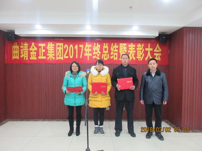 2018年2月2日上午,曲靖金正集團(tuán)2017年終總結(jié)暨表彰大會(huì)在公司辦公樓大會(huì)議室順利召開(kāi)。大會(huì)全面總結(jié)了曲靖金正集團(tuán)在2017年度的工作情況,并分析了各部門(mén)工作中存在的問(wèn)題,同時(shí)明確了集團(tuán)下一年度的工作方向和重點(diǎn),對(duì)各公司評(píng)選出的先進(jìn)員工以及通過(guò)房地產(chǎn)估價(jià)師、資產(chǎn)評(píng)估師、房地產(chǎn)經(jīng)紀(jì)人協(xié)理執(zhí)業(yè)資格考試的員工進(jìn)行隆重表彰。最后,在公司王總的監(jiān)督和見(jiàn)證下,各部順利完成2018年度目標(biāo)責(zé)任書(shū)的簽訂。